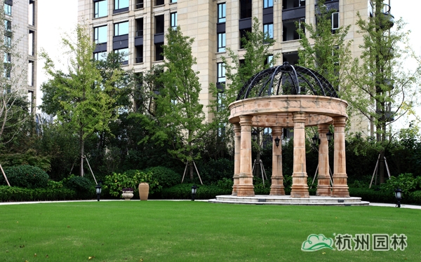 該工程位于杭州城北石祥路與蔡馬河交匯處,為大型綜合性園林景觀工程,內(nèi)容包括園林建筑、苗木種植、硬質(zhì)鋪裝、疊石跌水、景觀小品、土坡造型等。該項(xiàng)目景觀全方位采用規(guī)則式與自然式融合的維多利亞園林風(fēng)格,如夢(mèng)似幻,華貴雍容,將維多利亞皇家園林景觀特征表現(xiàn)得淋漓盡致。