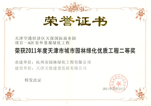 1. 公司一工程榮獲“2011年度天津市城市園林綠化優(yōu)質(zhì)工程二等獎”