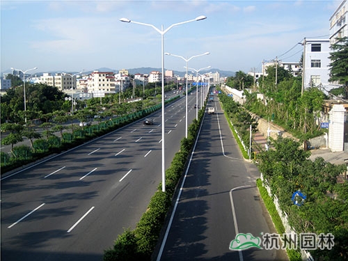 國道205深圳段改建工程景觀綠化工程G5402標(biāo)段,是深圳市龍崗區(qū)迎大運(yùn)重點(diǎn)景觀工程,位于國道205深圳段龍崗區(qū)地鐵三號(hào)線愛聯(lián)地鐵站至坪地與惠州市交界處,總綠化面積21萬㎡。“以人為本,尊重自然”、“ 處處有綠葉、無處不飛花”等設(shè)計(jì)理念貫穿于工程始終,整條中央綠化帶位于高架橋下,生長茂盛的各類植物形成一條色彩繽紛的彩帶擁簇著高架橋段,使整體橋段與綠化景觀有機(jī)融合。整條道路的景觀,不僅體顯出一個(gè)濱海大都市獨(dú)有的景觀特色,更彰顯這個(gè)城市的生機(jī)活力與熱情奔放。