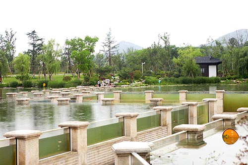 施工技術(shù)的創(chuàng)新以沉水廊道為代表。沉水廊道總長148米,是中國目前最長的廊道景觀,工程量大,施工條件復(fù)雜,面對的技術(shù)難題多。施工的最大難點(diǎn)是廊道防滲排水、基礎(chǔ)沉降及廊體抗浮處理等技術(shù)環(huán)節(jié)。通過技術(shù)團(tuán)隊(duì)的多次攻關(guān),最終解決了廊道不沉降、廊道結(jié)構(gòu)穩(wěn)定、結(jié)構(gòu)防水等問題,形成了獨(dú)具特色的長廊技術(shù)施工特色。