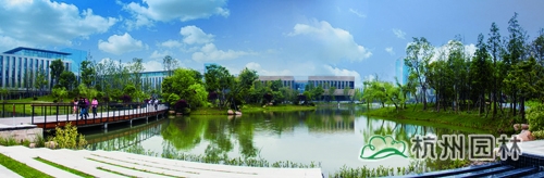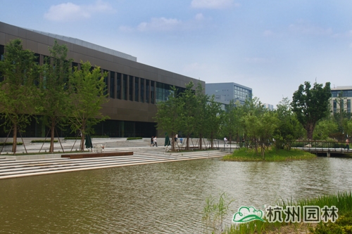 從濱江區(qū)江虹路的西入口處走進華為杭州生產(chǎn)基地,首先映入眼簾的是廣場上大小不一的花池,一棵棵銀杏、香樟、桂花生長得郁郁蔥蔥,昭示著無限的生機與活力。腳下的鋪裝,一邊是菠蘿格防腐木,一邊是規(guī)則的花崗巖,一“軟”一“硬”,相映成趣,蜿蜒延伸,直通前方的人工湖。清澈的湖水,在夏日陽光的照耀下,波光粼粼,偶爾一陣風(fēng)來,一圈圈的漣漪蕩漾,整個湖面都動了起來,讓人忍不住加快腳步,去一睹前方的美景。這就是華為杭州二期生產(chǎn)基地景觀綠化分包工程一標(biāo)段的現(xiàn)場景觀,該工程由杭州市園林綠化股份有限公司承建,曾榮獲2013年度浙江省園林綠化工程安全文明施工標(biāo)化工地。