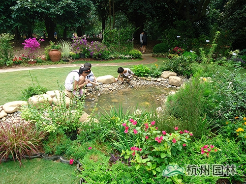 走進園內(nèi),蜿蜒的溪流和溪岸邊的景致野趣妙生,一下子撲入視野,清澈的溪水、光滑的卵石、可愛的小蝌蚪,與岸邊的銀邊菖蒲、水生鳶尾、花葉美人蕉、花葉蘆竹等水生植物一起,營造出生態(tài)、自然的河流景觀。“這條溪流,其實是我們杭州的母親河——錢塘江的縮影,通過這條溪流的營造,我們想呼吁更多的人保護生態(tài)、愛護環(huán)境,讓我們的母親河永遠干凈、清澈。”郭昌如簡短的話語中,透露出的是一名園林人渴望更多人關注水生態(tài)環(huán)境的殷殷期盼。