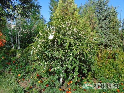 花博會開放時間是9月份,為配合開園需要,根據(jù)不同植物的開花特性及要求,采取相應(yīng)的措施,確保植物的最佳觀賞效果。桂花是杭州市市花,是集綠化、美化、香化于一體的優(yōu)良園林樹種,一般在仲秋時節(jié)綻放,“浙江園”的桂花全部精選自杭州畫境種業(yè)有限公司,提前運送至銀川之后,利用當(dāng)?shù)氐牡蜏丨h(huán)境誘使其完成花芽分化,在開園時營造了桂花滿樹、滿園飄香的氛圍。八仙花又名繡球,花大色美,是長江流域著名觀賞植物,在明、清時代建造的江南園林中就栽有八仙花。特別是八仙花‘無盡夏’具有多次開花的特點,項目人員通過修剪、培育,促進其花芽的再次分化,使展園內(nèi)的八仙花處于生長繁茂、花團錦簇的良好狀態(tài)。此外,還結(jié)合公司“一種紅楓快速成景方法”等專利,運用摘葉等形式促進槭樹科植物萌發(fā)新葉,為九博會的開幕增添新的色彩。