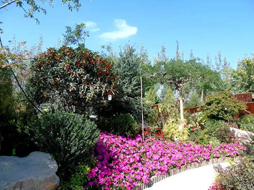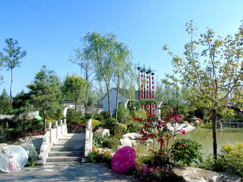 花博會(huì)開放時(shí)間是9月份,為配合開園需要,根據(jù)不同植物的開花特性及要求,采取相應(yīng)的措施,確保植物的最佳觀賞效果。桂花是杭州市市花,是集綠化、美化、香化于一體的優(yōu)良園林樹種,一般在仲秋時(shí)節(jié)綻放,“浙江園”的桂花全部精選自杭州畫境種業(yè)有限公司,提前運(yùn)送至銀川之后,利用當(dāng)?shù)氐牡蜏丨h(huán)境誘使其完成花芽分化,在開園時(shí)營(yíng)造了桂花滿樹、滿園飄香的氛圍。八仙花又名繡球,花大色美,是長(zhǎng)江流域著名觀賞植物,在明、清時(shí)代建造的江南園林中就栽有八仙花。特別是八仙花‘無(wú)盡夏’具有多次開花的特點(diǎn),項(xiàng)目人員通過(guò)修剪、培育,促進(jìn)其花芽的再次分化,使展園內(nèi)的八仙花處于生長(zhǎng)繁茂、花團(tuán)錦簇的良好狀態(tài)。此外,還結(jié)合公司“一種紅楓快速成景方法”等專利,運(yùn)用摘葉等形式促進(jìn)槭樹科植物萌發(fā)新葉,為九博會(huì)的開幕增添新的色彩。
