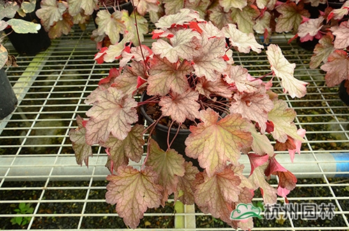 礬根Heuchera micrantha,虎耳草科礬根屬,多年生耐寒草本花卉,原產(chǎn)于美國(guó)中部,是少有的彩葉陰生地被植物,被廣泛應(yīng)用于美國(guó)園林景觀中。近年來(lái),在國(guó)內(nèi),作為新優(yōu)地被植物,礬根因其美麗的葉色和獨(dú)特的葉形,良好的觀賞性和景觀效果,成為熱門(mén)園林植物之一,有著廣闊的應(yīng)用前景。