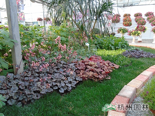 礬根花色各異,植株姿態(tài)優(yōu)雅,色鮮艷、花期長(zhǎng),既可以與其他觀賞植物搭配種植,也可以將不同顏色的礬根品種搭配種植,具有很高的觀賞價(jià)值。礬根在園林中多應(yīng)用于林下花境、地被、庭院綠化、立體造景;也多配置于多年生花壇或者花帶邊緣、巖石園、公路道路兩側(cè)等;也可作高架橋立體裝飾;組合盆栽用于陽(yáng)臺(tái)、花園及私家庭院中,也凸顯出其色彩優(yōu)勢(shì)。