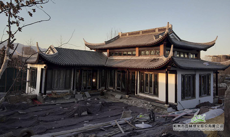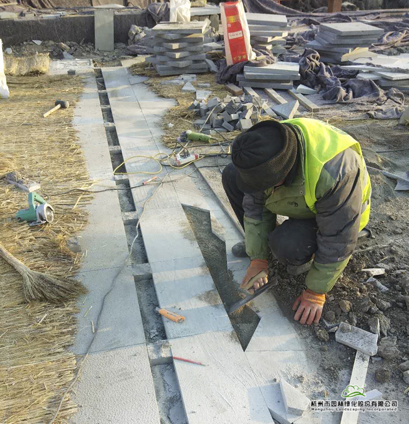 “白天溫度在零度以上時,我們趁著太陽出來、溫度比較高的時候施工;等太陽快下山時,溫度下降很快,這時,我們就停止施工,用毛氈、草墊等將做好的鋪裝蓋起來,再搭上保濕棚保溫。因為如果保暖措施做不到位,白天做好的鋪裝,晚上就會凍壞,導致白天的工作功虧一簣。一些種好的精品樹木,如造型黑松,我們就用很厚的棉被包裹起來,以防凍傷。”回憶起當初的施工過程,吳小成依然覺得這是施工中一段時常難熬的時期,“零下15℃的時候,我們還在施工,此時水已經(jīng)全部結冰,但施工又離不開水,怎么辦呢?我們買了一個加熱器,把冰放到桶里,再把桶加溫化水,以此來滿足施工中的用水需求。”