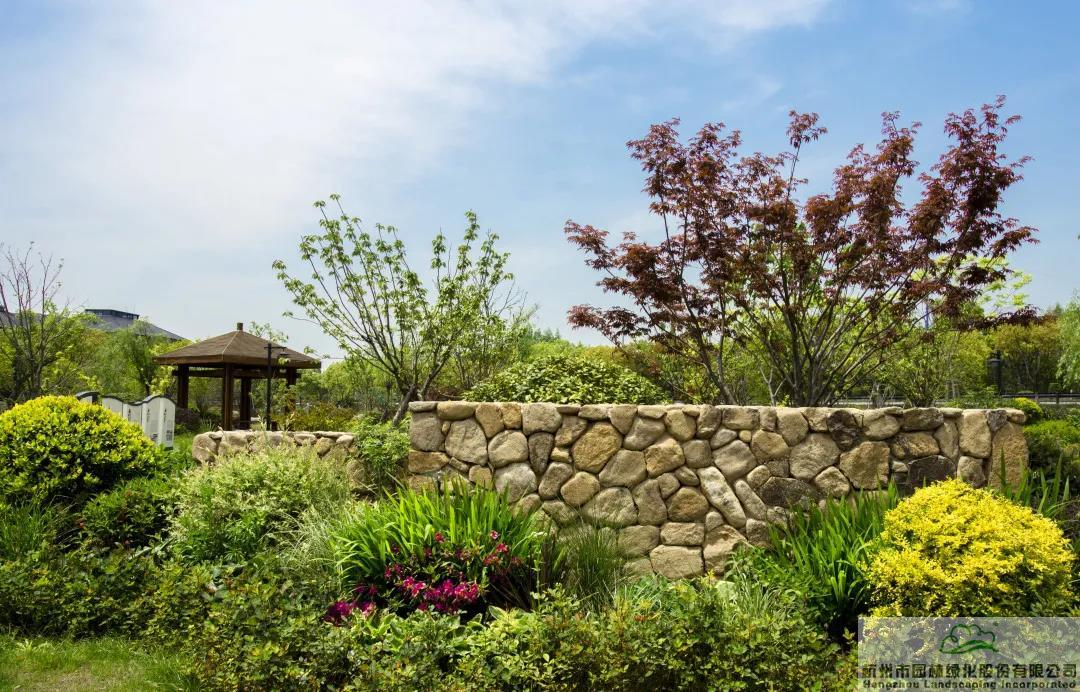 景墻邊的植物配置同樣有講究。利用銀杏、桂花、梅花、紅楓等植物營造上層空間,這些植物具有遮擋作用,能夠為庭院營造一定的私密空間。通過各種形態(tài)的小型喬灌木,打造中層空間,磚石和襯托景墻,使家家戶戶的景觀更加豐富多變。
