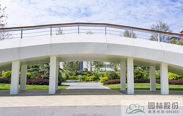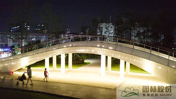 一座人行天橋,將公園景觀一分為二,動靜結(jié)合,相得益彰。既劃分空間,又是公園景觀的一部分。