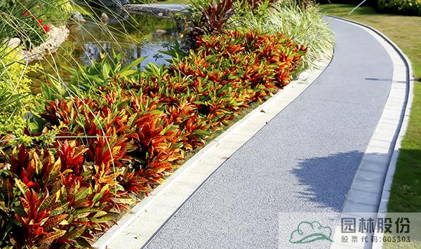 五顏六色的變?nèi)~木沿園路種植,幽靜的小路瞬間變得熱鬧起來。