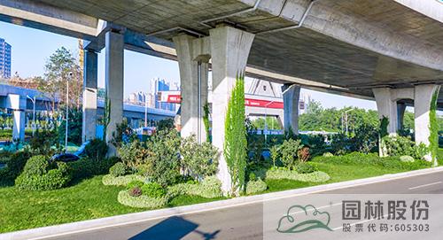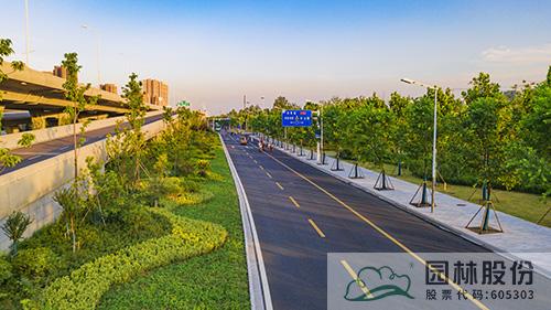 項(xiàng)目綠化施工主要包括道路分車帶、道路兩側(cè)帶狀綠地、節(jié)點(diǎn)綠地、高架橋垂直綠化等區(qū)塊。每個區(qū)塊根據(jù)其功能與特色,通過不同植物配置,營造豐富景觀。