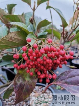 忍冬科莢蒾屬,落葉灌木,高可達(dá)3米。葉暗綠色,聚傘花序,單個花序徑較小,花冠白色,花期3-4月。核果球狀卵形,果量大,色彩從黃色漸變成橙色,最后轉(zhuǎn)成紅色,觀果期可長達(dá)5月。冬季至早春可修剪。一年施肥3次,早春萌芽前,花后及秋季。該種耐干旱,適合工程應(yīng)用或庭院觀賞。