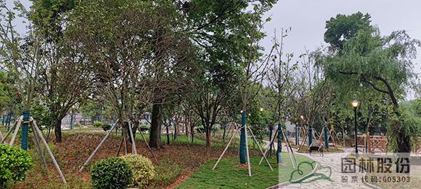公園內(nèi)部增加流線型道路系統(tǒng),以復(fù)層式開敞組團進(jìn)行植物配置,以楓香為主題植物,搭配烏桕、樸樹、櫸樹、柳樹等配景植物,下層種植美人蕉、石蒜、麥冬等,豐富植物層次,營造較為有序且精致的植物景觀,同時設(shè)置景石、景觀小品等增加亮點。
