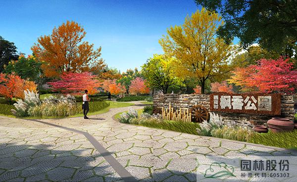 在公園入口設(shè)計標(biāo)識景墻,起一定指示作用的同時又能形成亮點,增重彩葉樹種及開花樹種,下層以麥冬、菖蒲等植物搭配景觀小品組成植物組團,留出一定的草坪空間,形成開合有致的植物空間,增加景觀的美觀度。