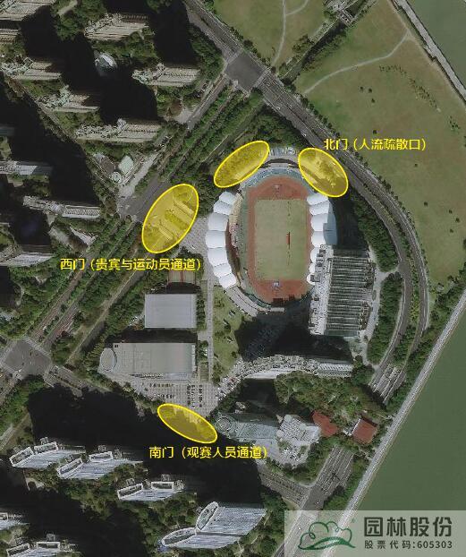 設(shè)計(jì)策略:對(duì)亞運(yùn)場館三個(gè)出入口進(jìn)行景觀提升,梳理中下層植被,布置足球主題裝置小品或綠雕,配合特色花境花帶和蒔花,打造活力、歡快、熱情的核心景觀氛圍。