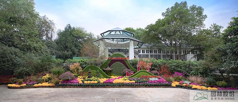 張楠帶領(lǐng)團(tuán)隊(duì)打造的2021年長(zhǎng)三角菊花精品展開幕式背景主題景觀