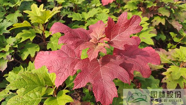 虎耳草科繡球?qū)伲淙~灌木;成株高度100-150 cm,成株冠幅 80-150 cm;葉片掌狀,長寬接近,3~7 裂;花期6-10 月,圓錐花序,花朵密集型,盛花時碩大醒目的花序可達 30 cm 以上,初期翠綠色,中后期花色逐漸轉(zhuǎn)白,秋季晝夜溫差大會使其逐漸暈染上粉紅色;老枝開花,成年植株花期觀賞效果極佳,花后修剪,平時只需修剪重疊枝、病殘枝即可,以免影響第二年開花;耐熱耐寒,喜溫暖和偏蔭蔽的環(huán)境,微酸性土壤;株型高大,枝條挺拔,樹冠寬闊豐滿,花球碩大;櫟樹一樣的掌狀葉片,到秋季會轉(zhuǎn)變?yōu)樯罴t色,紅葉期一般從每年的深秋至次年的5月,是一種既可觀花、又可賞葉的彩葉灌木。