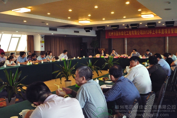 5月26日,杭州市園林綠化工程有限公司在田園賓館八樓會(huì)議廳召開(kāi)了“2012年上半年度項(xiàng)目管理交流會(huì)”,市場(chǎng)部經(jīng)理傅磊主持會(huì)議。各分公司、項(xiàng)目部及相關(guān)部門(mén)共六十多人參加了會(huì)議,董事長(zhǎng)吳光洪、副總經(jīng)理陳伯翔、總經(jīng)理助理吳憶明等領(lǐng)導(dǎo)出席。