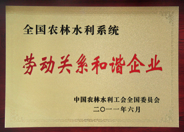 1. 公司榮獲“全國農(nóng)林水利系統(tǒng)勞動(dòng)關(guān)系和諧企業(yè)”稱號(hào)